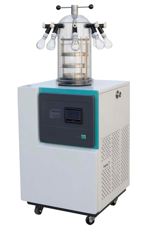 FD系列有机溶剂专用真空冷冻干燥机有五款基本配置:普通型、压塞型、多歧型管型、多歧管压塞型,T型多歧管型(24只)。